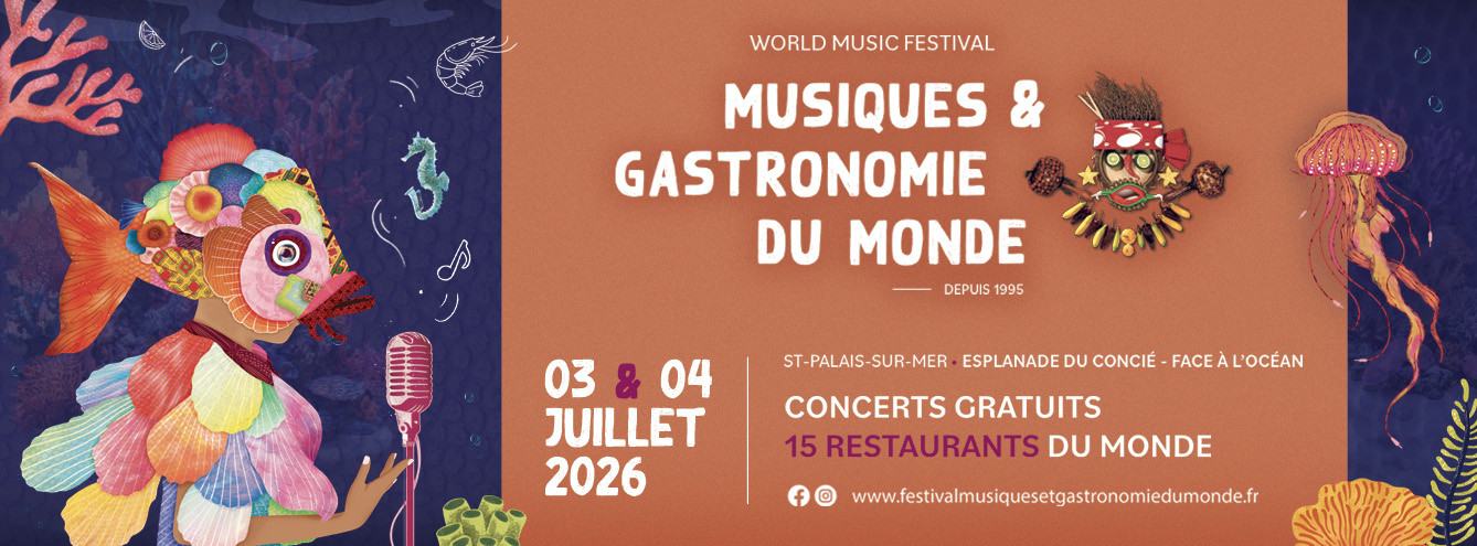 Organisé par la ville de Saint-Palais-sur-Mer, Musiques et Gastronomie du Monde est un festival de musiques du monde, se déroulant depuis 2019 dans un cadre exceptionnel : l’esplanade du Concié, face à la mer.
