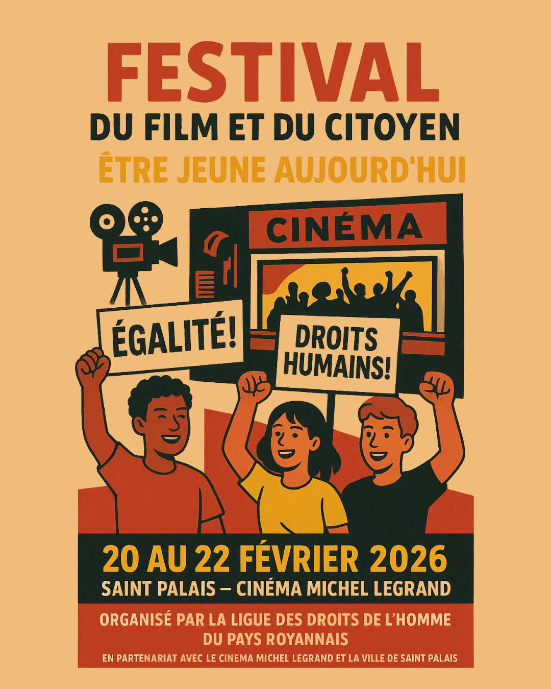 Pour la seconde année consécutive, la section Pays Royannais de la Ligue des Droits de l’Homme, en partenariat avec le cinéma le Spot, Salle Michel Legrand et la ville de Saint-Palais-sur-Mer, propose un week-end d’échanges et de débats autour de films qui captent avec force, nuance et émotion toutes les problématiques liées aux droits de l’homme et aux atteintes qui leur sont portées.
