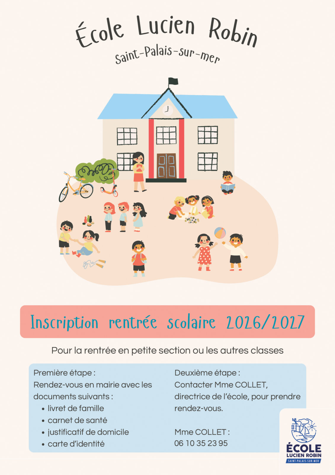 Les inscriptions pour la rentrée scolaire 2026-2027 de l’école Lucien Robin sont ouvertes.